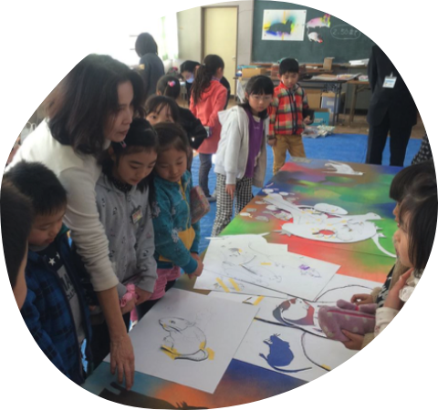 創造力・非認知能力 壁画制作子どもたちの創造力と非認知能力を育むアート教育プログラムとして東日本大震災をきっかけにスタートした壁画プロジェクト。宮沢賢治の物語を題材に作品を制作します。