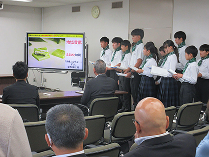 R7年度は、開発した特産品を「ふるさと納税」として出品し、「中学生が考案したふるさと納税」として、全国にPRしていく活動を行っている。ふるさと納税を単なる寄附として捉えるのではなく、地域への愛着を育むためのツールと考え、ふるさと納税を通して、地域への貢献ができるという実感を生徒に味わわせる活動を行っていきたい。中学生が、主体的にふるさと納税の返礼品等に関わることで、地元への愛着と誇りの育成、開発した商品への想いの高まり、地域への貢献意識を育むことができると考え、実践を行う予定である。