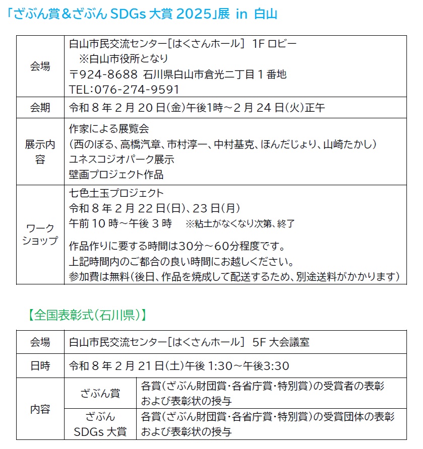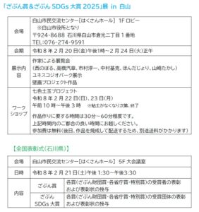 「ざぶん賞&ざぶんSDGs大賞2025」展 in 白山 展示会場の変更及びワークショップの開催について