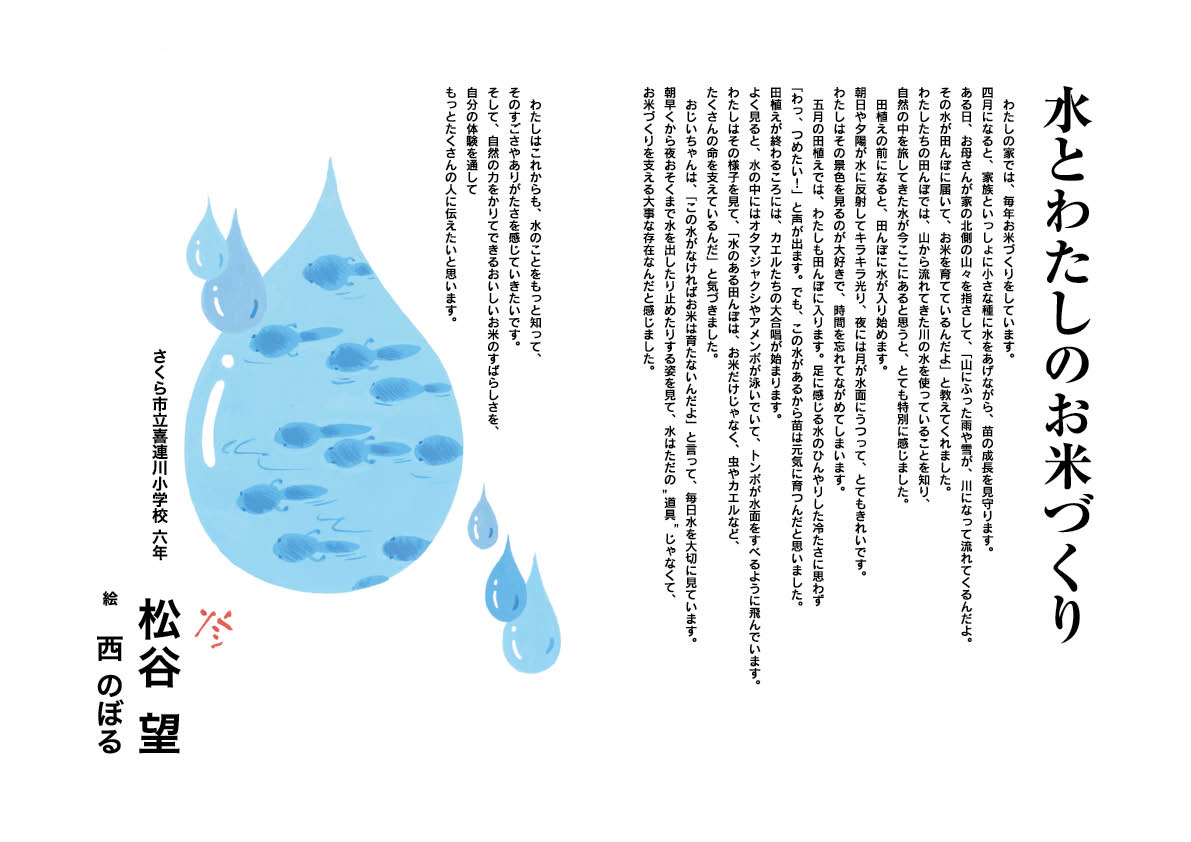 小・中学生を対象に「水」や「命」や「自然」の大切さをテーマにした作文を広く募集し、